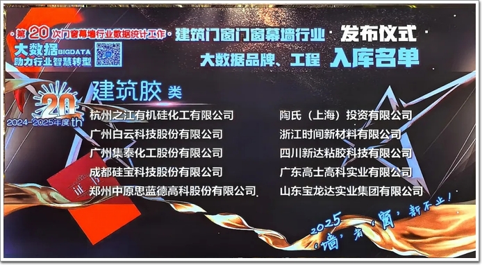 會(huì)議期間,舉行了2024-2025年度第20屆AL-Survey建筑門窗幕墻行業(yè)“建筑膠十大首選品牌”發(fā)布儀式。寶龍達(dá)作為國家專精特新重點(diǎn)“小巨人”企業(yè)、中國氟硅行業(yè)典范企業(yè),憑借其優(yōu)秀的系統(tǒng)解決方案、業(yè)界超高的美譽(yù)度和知名度,再次贏得業(yè)內(nèi)的好評(píng)認(rèn)可,連續(xù)多年獲得“中國建筑膠十大首選品牌”殊榮。
