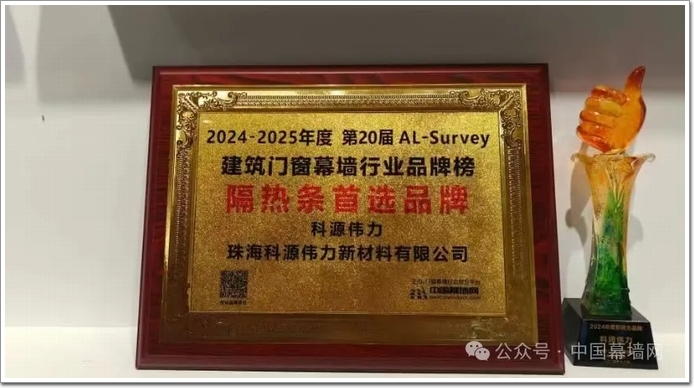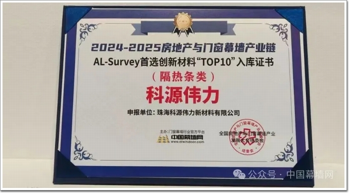 其中“科源偉力”作為2024-2025年度建筑門(mén)窗幕墻行業(yè)大數(shù)據(jù)“TOP10”品牌入庫(kù)證書(shū)(隔熱條類(lèi))上榜企業(yè),上臺(tái)領(lǐng)取了入庫(kù)證書(shū)。