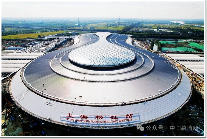 “上海松江站站房”是由上海市機械施工集團有限公司傾力打造其幕墻項目部分,創造了多個第一,代表了城市交通新網路與城市建筑的完美融合。