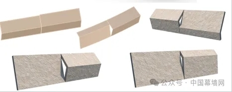 以三星堆新館幕墻為例:選用80mm厚度米黃色石材,通過手工鑿毛處理,曲面折板弧形的石材造型,單塊最大分格1.7平方,在施工過程中3-4塊組裝一個單元,單元重量300公斤,讓幕墻視覺效果更加凸顯,采用分格開縫錯縫布置。
