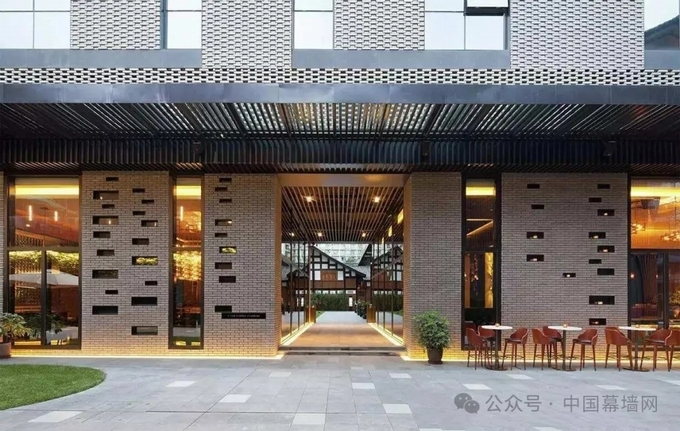 三星堆博物館的石材幕墻,以手工鑿毛紋理與單元組裝技術重現古蜀文明質感;成都博舍酒店陶磚幕墻通過模塊化預制與精密拼接,將傳統材料演繹為現代藝術表達。