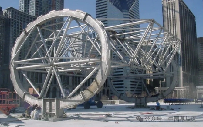 “芝加哥云門”:榮獲美國杰出焊接獎,是金屬板幕墻加工的極致項目之一。項目寬20m、高10m、深13m,中間拱口3.7m高,重110噸。由168塊9.5mm厚S316不銹鋼板的組成,完美焊接高度拋光,整體結果天衣無縫,從視覺上看不到任何接縫。