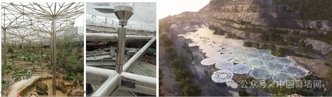 國內獨一無二的項目案例,江蘇園博園的42個傘狀不銹鋼主體結構,上覆蓋透明亞克力板、照明、水景等。