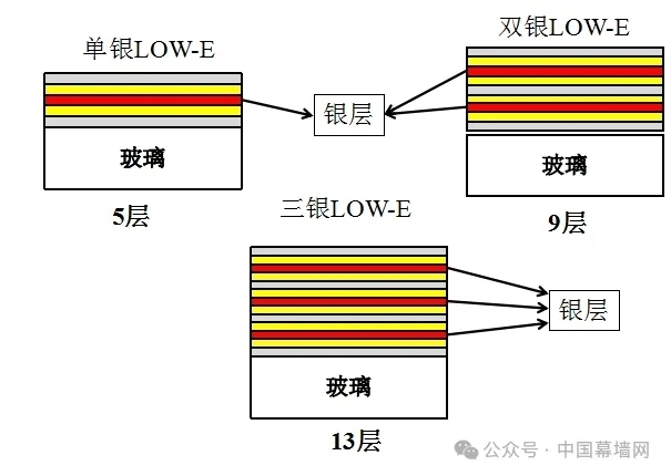 不同的玻璃構造類型:單片玻璃、夾膠玻璃(多層夾膠)、中空玻璃(多層中空)、 中空夾膠(多層組合)、真空玻璃等。