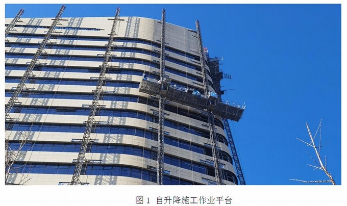 構(gòu)件式幕墻是安裝在主體結(jié)構(gòu)外,通過幕墻豎向立柱(詞條“立柱”由行業(yè)大百科提供)、橫向龍骨組成網(wǎng)格,再鋪設(shè)面板和裝飾線條的一種幕墻構(gòu)造。這種幕墻構(gòu)造需要施工人員從建筑外側(cè)進(jìn)行施工。早年一些幕墻工程會采用腳手架作為施工措施,而現(xiàn)在則大部分會采用吊籃的施工方式。近些年也出現(xiàn)了自升施工平臺等更加方便的施工方法。見圖1示意。