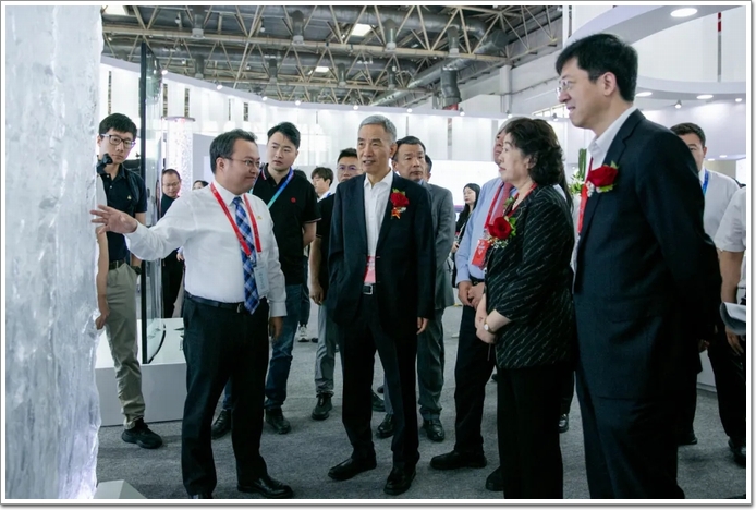 展會首日,中國建筑材料(詞條“建筑材料”由行業大百科提供)聯合會會長閻曉峰、常務副會長陳國慶,中國工程院院士、中國建材集團總工程師、凱盛集團董事長彭壽,中國硅酸鹽學會副理事長晉占平,中國建筑玻璃與工業玻璃協會會長張佰恒等行業權威領導蒞臨北玻展臺參觀指導。北玻股份副董事長、總裁高理全程接待,并重點向各位領導嘉賓介紹了北玻近年來在技術創新與產品研發方面的最新成果,包括建筑玻璃的工藝革新、琉璃幕墻系統的技術突破以及輕晶石裝配式房屋系統在綠色建筑領域的前沿探索,獲得現場領導的高度認可與肯定。