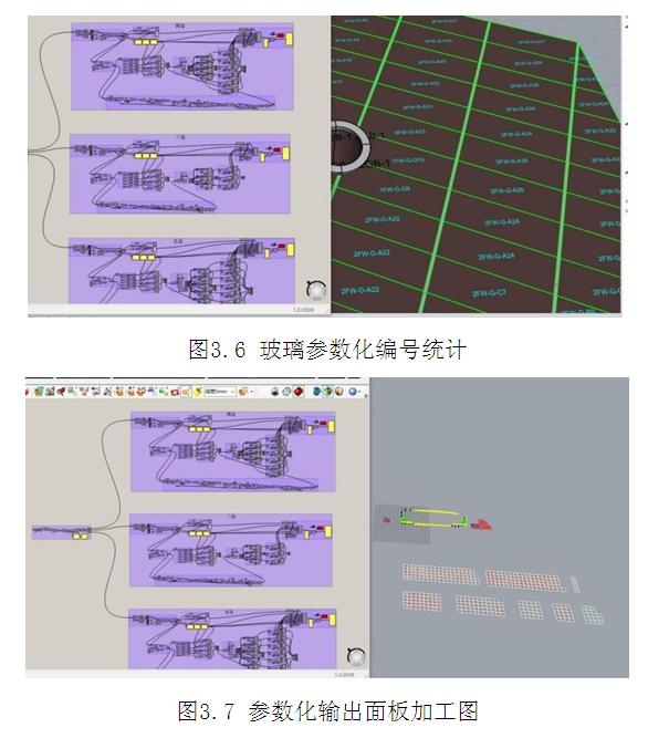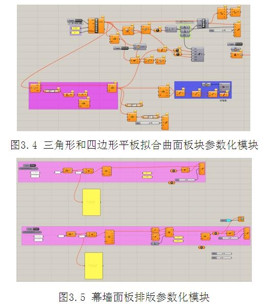 設置平板擬合曲面、面板排版等參數化模塊,快速準確表達雙曲面幕墻構造,為幕墻提料階段打下基礎。(如圖3.4~3.5)