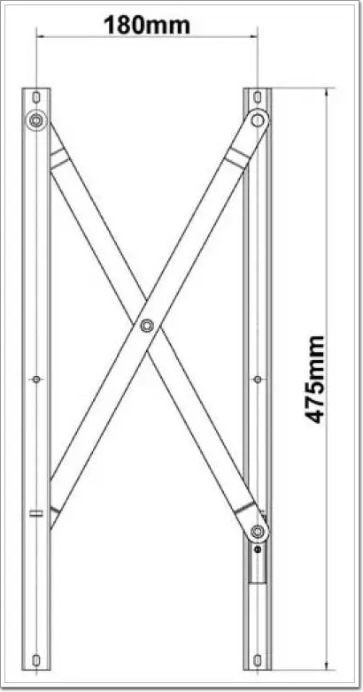 這種單 X 型平推鉸鏈安裝在窗戶的四周,當窗戶開啟的時候,窗扇將不是如合頁或摩擦鉸鏈一樣沿窗一側的單軸或多軸共同作用的軌跡轉出去,顧名思義,而是整個窗扇平移出去,如下圖: