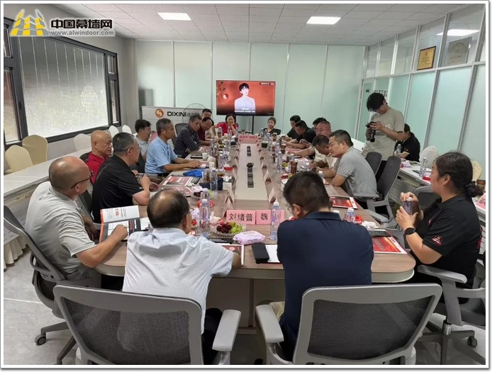在迪西尼公司高層的熱情邀請下,大家來到了明亮、舒適的會議室,開啟高端座談與對話,雙方就當前行業內的綠色創新、幕墻行業標準制定、技術攻關、市場熱點等議題展開討論。