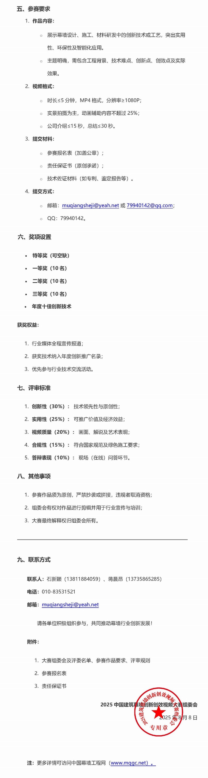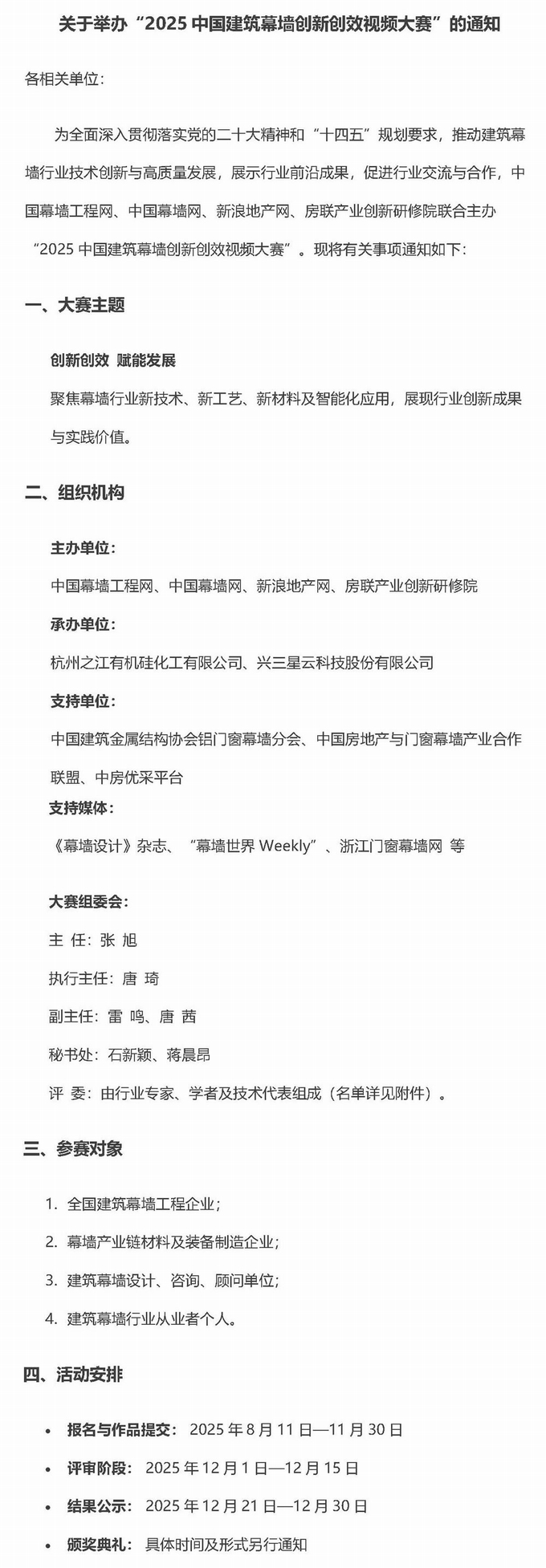 關于舉辦“2025中國建筑幕墻創新創效視頻大賽”的通知
