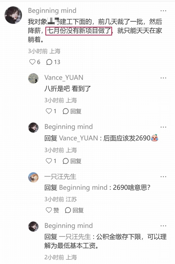 評論區有網友指出是項目經理被裁了: