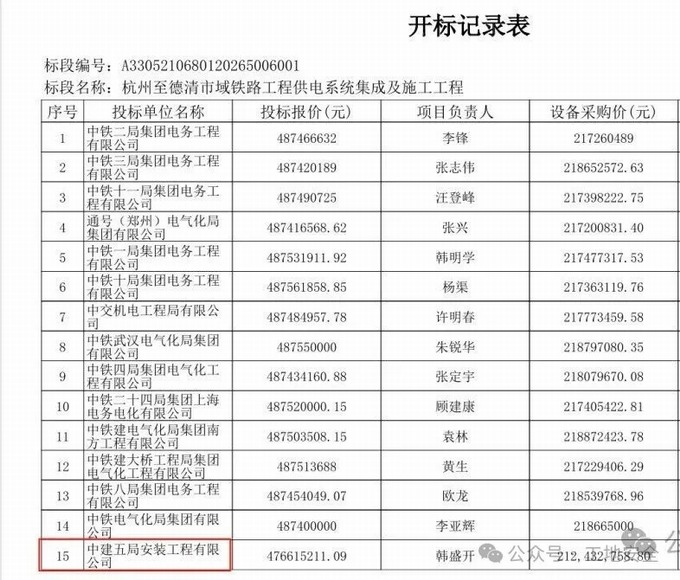 投訴人中建五局安裝工程有限公司認(rèn)為杭州至德清市域鐵路工程供電系統(tǒng)集成及施工工程招投標(biāo)活動中存在串通投標(biāo)行為,于2024年11月27日向本機(jī)關(guān)提起投訴,本機(jī)關(guān)于2024年11月28日受理。經(jīng)依法對本次工程建設(shè)項目招標(biāo)投標(biāo)活動的相關(guān)材料進(jìn)行審查,現(xiàn)已審查終結(jié)。