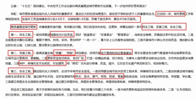 四中全會關(guān)于“十五五”重大部署:城市更新蘊(yùn)含重大機(jī)遇,將繼續(xù)推進(jìn)城市更新。