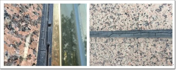 (1)密封膠硬化、開(kāi)裂、脫粘。
