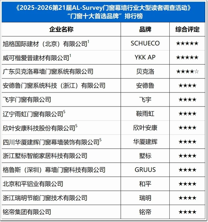 當晚,2026第二屆全國房地產與門窗幕墻高質量發展大會暨TOP品牌頒獎盛典正式揭曉了2025-2026第21屆AL-Survey門窗幕墻行業 “TOP首選品牌”榜單。