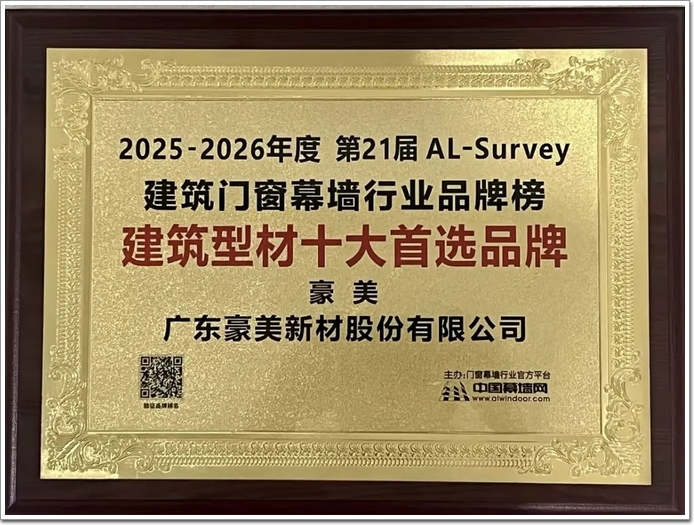 此次雙品牌同登TOP榜單,既是行業對豪美新材全產業鏈實力的高度肯定,也是對貝克洛在系統門窗領域創新能力的認可,是榮譽更是動力。