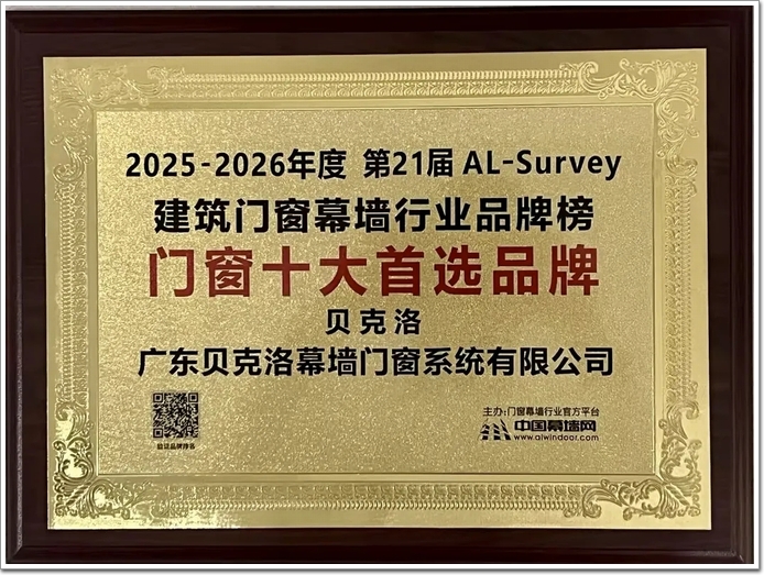 會上,豪美新材及其全資子公司核心品牌“貝克洛”憑借卓越的綜合實力、深厚的技術積淀及良好的行業口碑,雙雙榮登中國門窗幕墻行業TOP品牌榜,實現雙品牌同獲殊榮的行業佳話,彰顯了企業在鋁型材及系統門窗領域的雙重領軍地位!