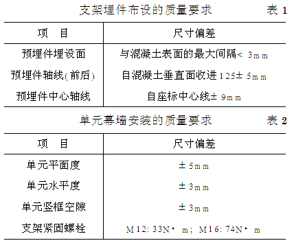 (1)幕墻單元水平度偏差較為明顯,主要原因是幕墻單元在加工制作和現(xiàn)場安裝時(shí)產(chǎn)生的。為此,在現(xiàn)場安裝時(shí),除了嚴(yán)格控制安裝質(zhì)量外,還采取同型號幕墻單元偏差選配,盡可能使正負(fù)偏差相抵_
