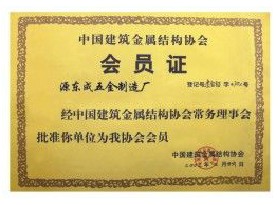 中國建筑金屬結構協會會員證 |