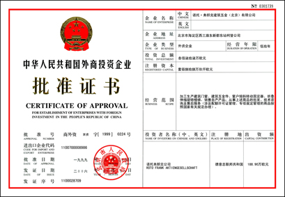 外資企業批準證書