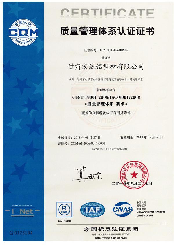 證書名稱: ISO9001:2008質(zhì)量管理體系認證證書
