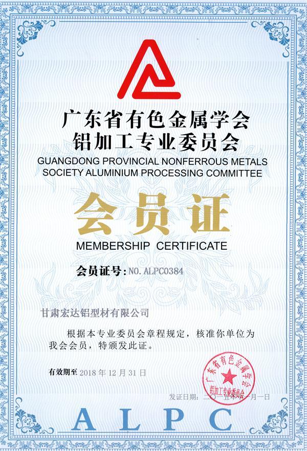 證書名稱: 廣東省有色金屬協(xié)會鋁加工專業(yè)委員會會員證