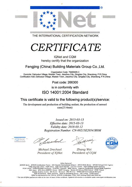 環(huán)境管理體系認(rèn)證證書 |