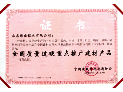 證書名稱: 全國質(zhì)量過硬重點(diǎn)推廣建材產(chǎn)品