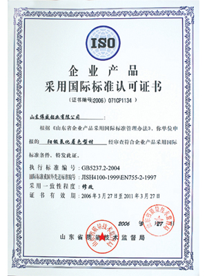 證書名稱: 企業(yè)產(chǎn)品采用國際標(biāo)準(zhǔn)認(rèn)可證書