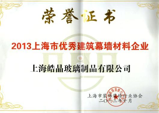 證書名稱: 2013上海市優秀建筑幕墻材料企業