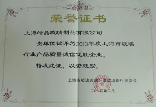 證書名稱: 2013年行業產品質量誠信優勝企業