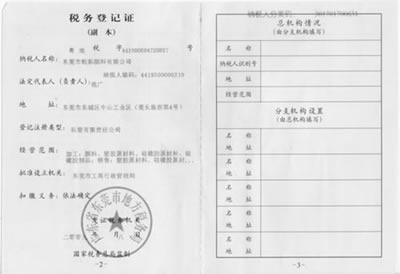 證書名稱: 稅務登記證