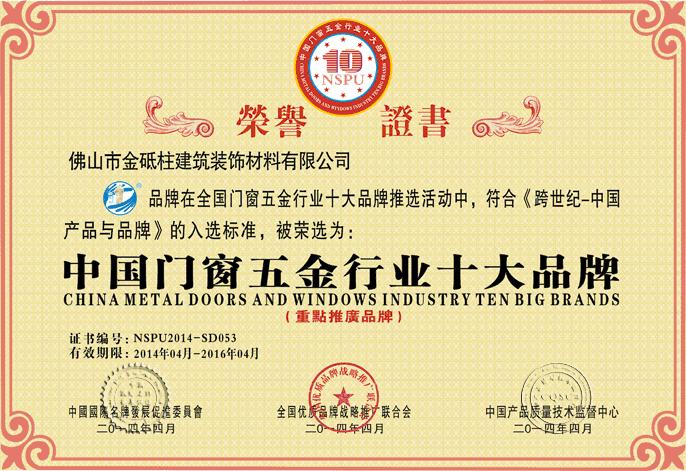 證書名稱: 五金行業十大品牌