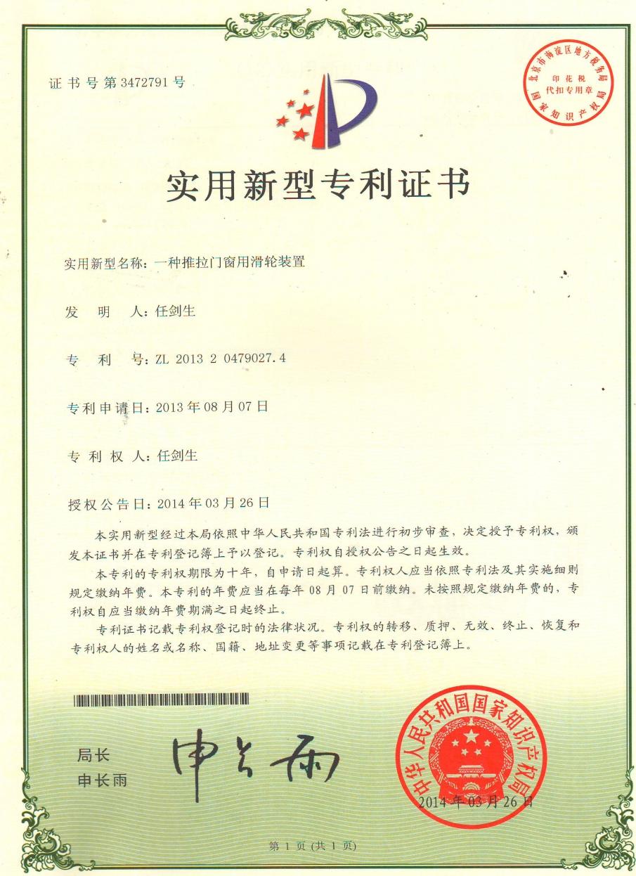 證書名稱: 滑輪專利證書