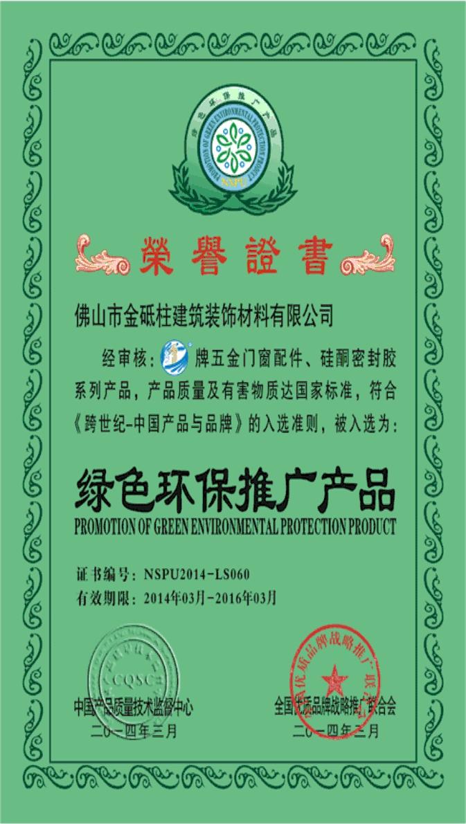 證書名稱: 綠色環保推廣產品