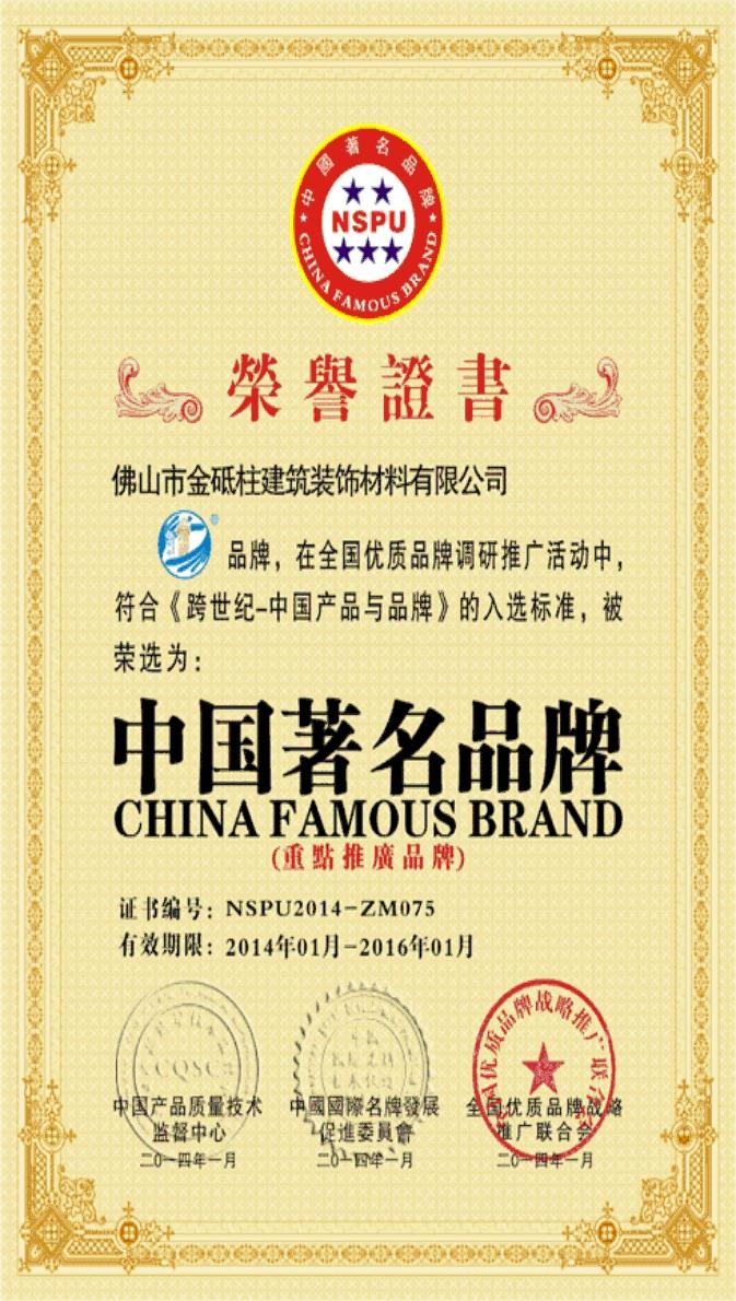 證書名稱: 中國著名品牌
