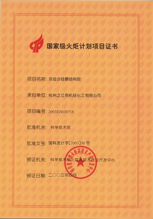 頒發機構: 科學技術部火炬高技術產業開發中心
