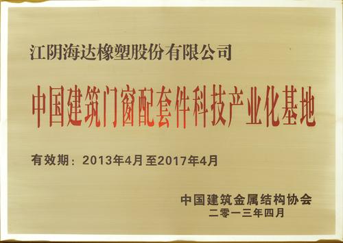證書名稱: 中國建筑門窗配套件產(chǎn)業(yè)化基地