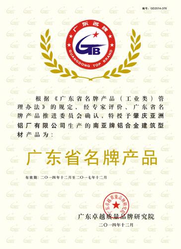 證書名稱: 廣東省鋁型材工程技術研究中心