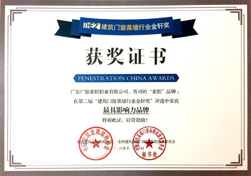 證書名稱: 建筑門窗幕墻行業最具影響力品牌