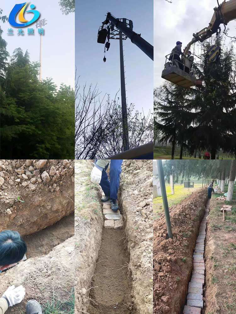 簡介—— 陜西西安某工程大學高桿燈項目是我公司2021年4月進行的供貨及安裝項目,項目主要是在學校園區內部進行線纜溝的開挖和回填,已經線纜的敷設和燈具的供貨安裝,整個工期周期15天時間,在短期內恢復路面平整,不影響校園學生的正常學習生活。