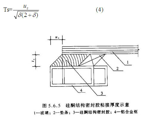 2.1硅酮結構膠的粘接厚度tS(如下圖)應符合公式(4)的要求: