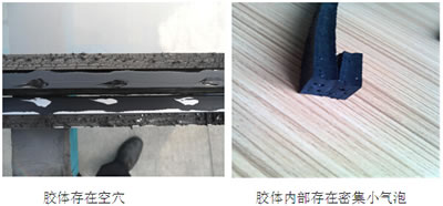 上述兩個問題都是嚴重危害結構膠安全應用的問題。施工過程中務必保證結構膠粘接尺寸符合設計要求,注膠飽滿,無氣泡、空穴。希望客戶在用膠過程中,應避免出現這些問題,保障幕墻安全。