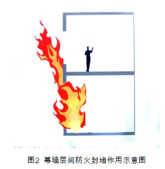 消防安全是幕墻安全乃至建筑安全的一個重要組成部分,是考慮建筑安全性不容忽視的一個重要方面。一般建筑物由于建筑構造的要求,在幕墻和樓板之間留有較大的縫隙,若對其沒有進行防火封堵密封或封堵密封不好,一旦發生火災,煙火就會由此向上擴散,迅速造成蔓延。