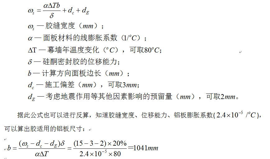 2. 該位移能力的膠是否滿足鋁板變形要求,可以通過計算知道。膠縫寬度,按JGJ 102-2003第4.3.9規定進行計算: