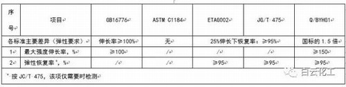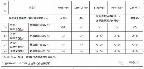 GB16776、JG/T475個別項目要求比ASTM C1184要相對嚴格;歐洲ETAG002標準中沒有相關施工特性指標的評定,缺失了施工性能方面的考量。