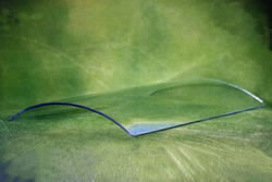 容損金屬玻璃 - 簡介 一種新型的容損金屬玻璃,已經(jīng)被證明超出了任何已知材料的強度和韌性,美國能源部(DOE)、勞倫斯伯克利國家實驗室(伯克利實驗室)和加州理工學院的研究人員合作測試通過了這一新發(fā)現(xiàn)。更令人驚喜的是,這種玻璃似乎很快就能投入日常使用。 容損金屬玻璃 - 構成 這種新型金屬玻璃加入了一些微量的鈀元素,一種具有超高“容積剪切率”的堅硬金屬元素,它抵消了玻璃材料不可避免的脆弱易碎性。由于含鈀元素這種高容積剪切率的金屬,剪切帶形成所需要的能量遠低于剪切帶斷開成為裂口的能量,這就導致了這種玻璃具有超強的可塑性,能夠抵抗巨大的沖擊力,這種沖擊力只能讓它彎曲,而不是碎裂。 容損金屬玻璃 - 研究 玻璃材料具有非結晶、無定形的結構,使它們雖然非常堅固,但也極度易碎,而金屬的晶體結構可以提供抵抗碎裂的阻力(包括內(nèi)含的某些雜質(zhì)、晶界等),從而抑制碎裂的裂縫生成并擴大。而玻璃并不具備這種晶體結構,所以無法制止碎裂的裂紋擴展。而這個問題在金屬玻璃上顯得更為尖銳,哪怕一個小小的剪切帶都能在微弱的力量作用下進行災難性的擴大。 在早期的研究工作中,在伯克利實驗室和加州理工學院的合作之下,制造出被稱為“DH3”的金屬玻璃,其中金屬晶相的介入能夠阻斷裂紋擴展。這種金屬晶相采取樹突的形式滲透到玻璃的非晶結構,用以防止裂紋蔓延成一個開放的裂口。而在這個新的工藝中,合作者們制作出了純玻璃材料,其獨特的化學成分起到了促使通過多重剪切帶形成從而制止裂縫的擴大。 最初的新玻璃材料樣本是由含磷、硅和鍺的微量鈀元素混合,取得了直徑約一毫米的玻璃棒,而后來加州理工學院的研究人員添加了銀元素,讓玻璃棒的厚度擴大到六毫米。這種金屬玻璃的大小是有限的,必須迅速冷卻或者“淬火”,才能得到最后的非晶態(tài)液態(tài)金屬。 容損金屬玻璃 - 意義“我們的研究結果標志著金屬玻璃的制造得到了第一次戰(zhàn)略性的運用。我們相信可以利用這一工藝來制造更強更堅韌的玻璃制品。”主持這一研究的伯克利實驗室材料學家羅伯特•里奇如是說。